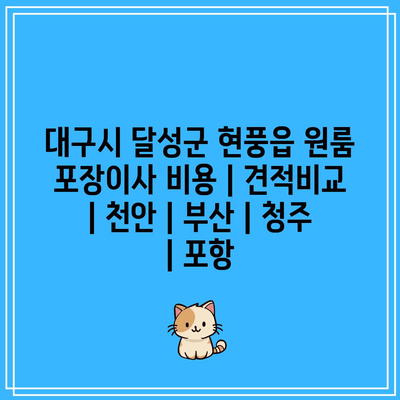 대구시 달성군 현풍읍에서 원룸 포장이사 비용을 구하고 싶습니다. 또한 천안, 부산, 청주, 포항 지역의 비용도 비교할 수 있으면 좋겠습니다.