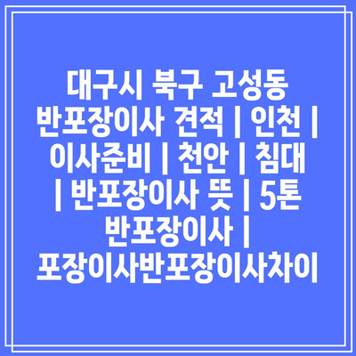 대구시 북구 고성동 반포장이사 견적에 대한 모든 것