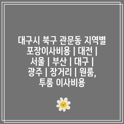 대구시 북구 관문동 지역별 포장이사비용 | 대전 | 서울 | 부산 | 대구 | 광주 | 장거리 | 원룸, 투룸 이사비용 에 대해 자주 묻는 질문 TOP 5