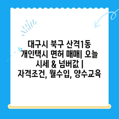 ✅ 대구 북구 산격1동 개인택시 면허 매매, 궁금한 모든 것을 한눈에! 시세, 자격, 수입, 교육 정보까지!