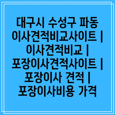 이사견적비교사이트 방문 : 견적비교 사이트에 접속하여 대구시 수성구 파동 지역을 선택하세요.이사 정보 입력 : 이사 날짜, 거리, 이사 규모 등의 내용을 입력하세요.견적 비교 : 다양한 업체에서 보낸 견적을 비교하여 최적의 옵션을 선택하세요.