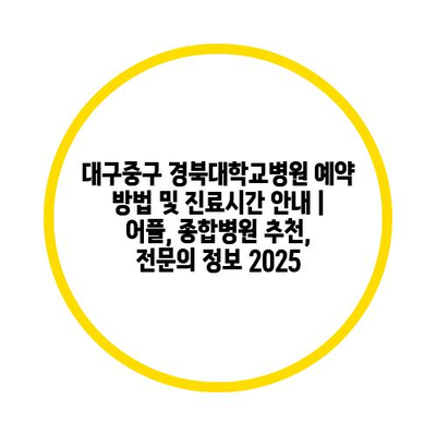 대구중구 경북대학교병원 예약 방법 및 진료시간 안내 | 어플, 종합병원 추천, 전문의 정보 2025