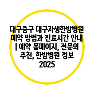 대구중구 대구자생한방병원 예약 방법과 진료시간 공지 | 예약 홈페이지, 전연락 추천, 한방병원 정보 2025 에 대해 자주 묻는 질문 TOP 5