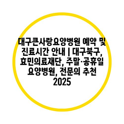 대구큰사랑요양병원 예약 및 진료시간 공지 | 대구북구, 효민의료재단, 주말·공휴일 요양병원, 전연락 추천 2025 에 대해 자주 묻는 질문 TOP 5
