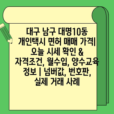 ✅ 대구 남구 대명10동 개인택시 면허 매매 시세가 궁금하신가요? 실제 거래 사례와 함께 자세히 알아보세요!