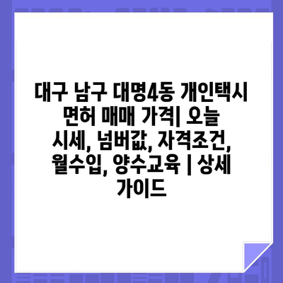 ✅ 대구 남구 대명4동 개인택시 면허 매매 가격, 오늘 시세가 궁금하신가요? 지금 바로 확인하세요!