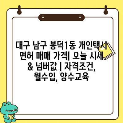 대구 남구 봉덕1동 개인택시 면허 매매 가격이 궁금하신가요? 오늘 시세와 넘버값, 자격조건, 월수입, 양수교육까지 한 번에 확인하세요!