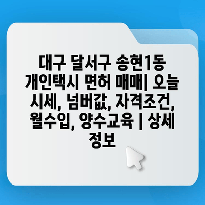 ✅ 대구 달서구 송현1동 개인택시 면허 매매 시세와 자격조건, 월수입 정보를 한눈에 확인해 보세요!