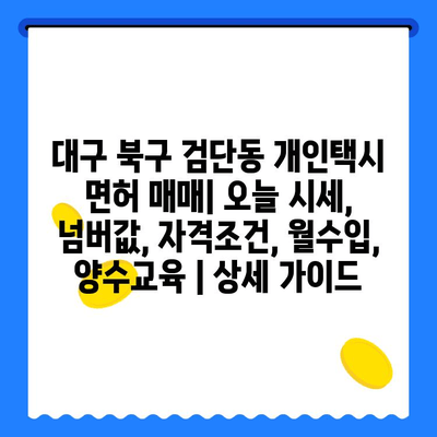 ✅ 대구 북구 검단동 개인택시 면허 매매 시세, 넘버값, 자격조건, 월수입, 양수교육 등 자세한 정보를 확인해보세요.