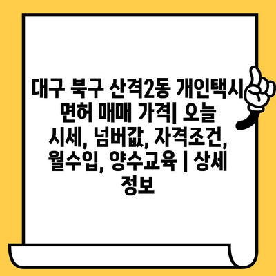 대구 북구 산격2동 개인택시 면허 매매 시세와 넘버값, 월수입 정보를 확인하고, 자격 조건 및 양수 교육까지 알아보세요!