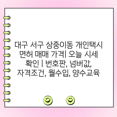 대구 서구 상중이동 개인택시 면허 매매 가격, 오늘 시세 확인해보세요! 번호판, 넘버값, 자격조건, 월수입, 양수교육까지 한번에!