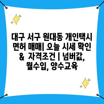 ✅ 대구 서구 원대동 개인택시 면허 매매 시세, 자격조건, 넘버값, 월수입, 양수교육 등 궁금한 모든 정보를 한 번에 확인하세요!
