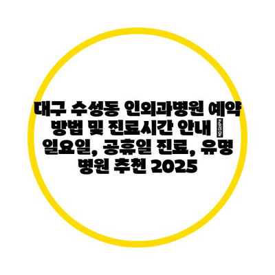 대구 수성동 인외과병원 예약 방법 및 진료시간 공지 | 일요일, 공휴일 진료, 유명 병원 추천 2025 에 대해 자주 묻는 질문 TOP 5