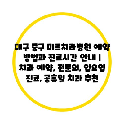 대구 중구 미르치과병원 예약 방법과 진료시간 안내 | 치과 예약, 전문의, 일요일 진료, 공휴일 치과 추천