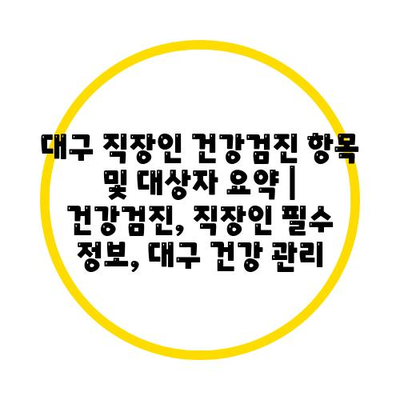 대구 직장인 건강검진 항목 및 대상자 요약 | 건강검진, 직장인 필수 정보, 대구 건강 관리 에 대해 자주 묻는 질문 TOP 5
