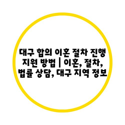 대구 합의 이혼 절차 진행 지원 방법 | 이혼, 절차, 법률 상담, 대구 지역 정보