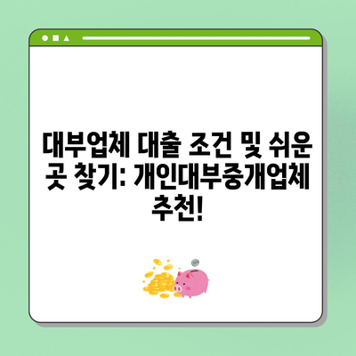 대부업체 대출 조건 및 쉬운 곳 찾기: 개인대부중개업체 추천!