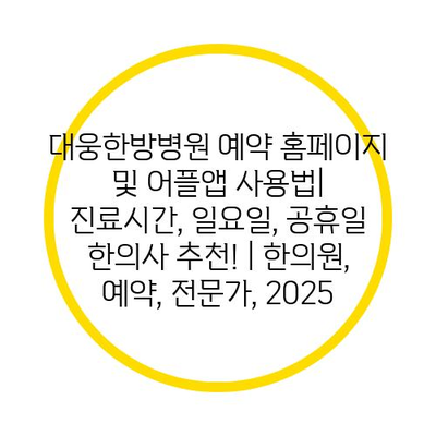 ✅ 대웅한방병원 예약 방법과 진료 시간을 지금 바로 알아보세요!