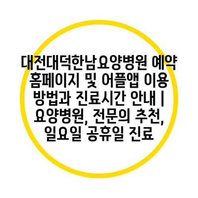 대전대덕한남요양병원 예약 홈페이지 및 어플앱 이용 방법과 진료시간 공지 | 요양병원, 전연락 추천, 일요일 공휴일 진료 에 대해 자주 묻는 질문 TOP 5