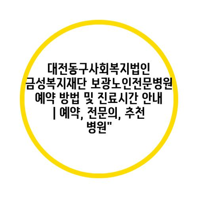 대전동구사회복지법인 금성복지재단 보광노인전문병원 예약 방법 및 진료시간 공지 | 예약, 전연락, 추천 병원에 대해 자주 묻는 질문 TOP 5
