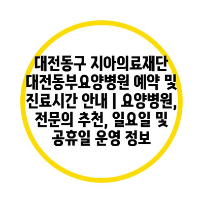 대전동구 지아의료재단 대전동부요양병원 예약 및 진료시간 공지 | 요양병원, 전연락 추천, 일요일 및 공휴일 운영 정보 에 대해 자주 묻는 질문 TOP 5