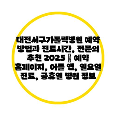 대전서구가톨릭병원 예약 방법과 진료시간, 전문의 추천 2025 | 예약 홈페이지, 어플 앱, 일요일 진료, 공휴일 병원 정보