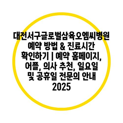 대전서구글로벌삼육오엠씨병원 예약 방법 & 진료시간 확인하기 | 예약 홈페이지, 어플, 의사 추천, 일요일 및 공휴일 전연락 공지 2025에 대해 알아보겠습니다.