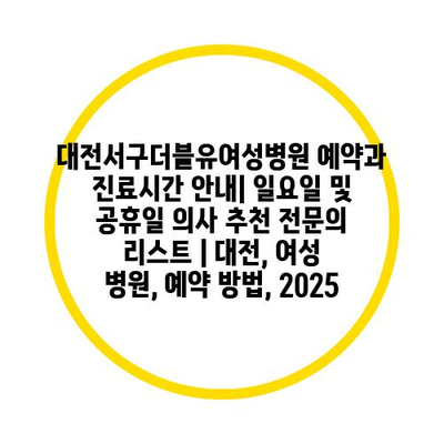 대전서구더블유여성병원 예약과 진료시간 공지| 일요일 및 공휴일 의사 추천 전연락 리스트 | 대전, 여성 병원, 예약 방법, 2025 에 대해 자주 묻는 질문 TOP 5
