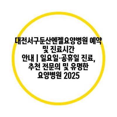 대전서구둔산엔젤요양병원 예약 및 진료시간 공지|일요일·공휴일 진료, 추천 전연락 및 유명한 요양병원 2025 에 대해 자주 묻는 질문 TOP 5