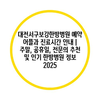 대전서구보강한방병원 예약 어플과 진료시간 공지 | 주말, 공휴일, 전연락 추천 및 인기 한방병원 정보 2025에 대해 알아보겠습니다.