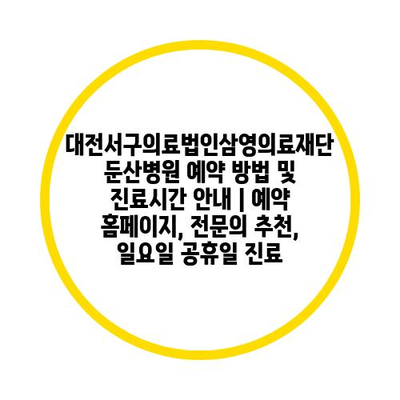 대전서구의료법인삼영의료재단 둔산병원 예약 방법 및 진료시간 안내 | 예약 홈페이지, 전문의 추천, 일요일 공휴일 진료