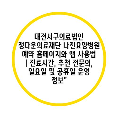 대전서구의료법인 정다운의료재단 나진요양병원 예약 홈페이지와 앱 사용법 | 진료시간, 추천 전연락, 일요일 및 공휴일 운영 정보에 대해 자주 묻는 질문 TOP 5