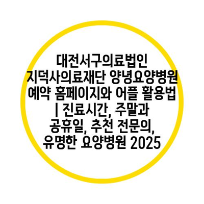 대전서구의료법인 지덕사의료재단 양녕요양병원 예약 홈페이지와 어플 활용법 | 진료시간, 주말과 공휴일, 추천 전연락, 유명한 요양병원 2025 에 대해 자주 묻는 질문 TOP 5