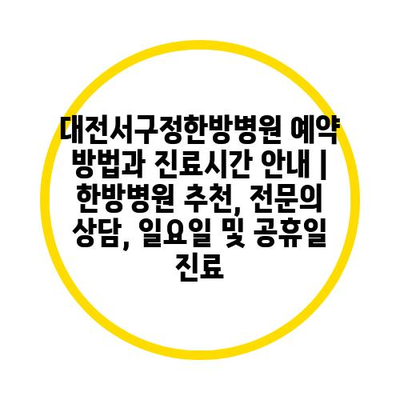 대전서구정한방병원 예약 방법과 진료시간 안내 | 한방병원 추천, 전문의 상담, 일요일 및 공휴일 진료