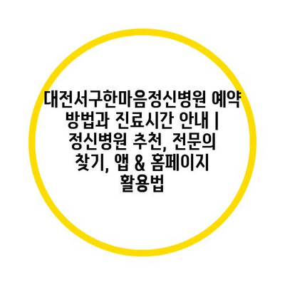 ✅ 대전서구한마음정신병원의 예약 방법과 진료 시간을 자세히 알아보세요.