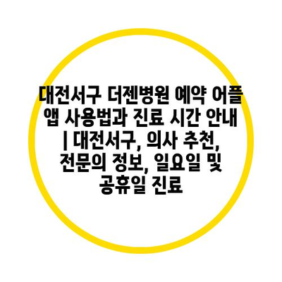 대전서구 더젠병원 예약 어플 앱 사용법과 진료 시간 안내 | 대전서구, 의사 추천, 전문의 정보, 일요일 및 공휴일 진료