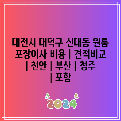 이 글을 통해 대전시 대덕구 신대동 원룸 포장이사 비용과 다른 도시로 이사할 경우 견적을 비교하는 방법에 대한 포괄적인 개요를 알려알려드리겠습니다. 이 내용을 활용하여 예상 비용을 예측하고 지갑에 부담이 되지 않는 이사를 계획하세요.