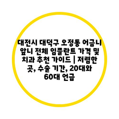대전시 대덕구 오정동 어금니 앞니 전체 임플란트 가격 및 치과 추천 가이드 | 저렴한 곳, 수술 기간, 20대와 60대 언급