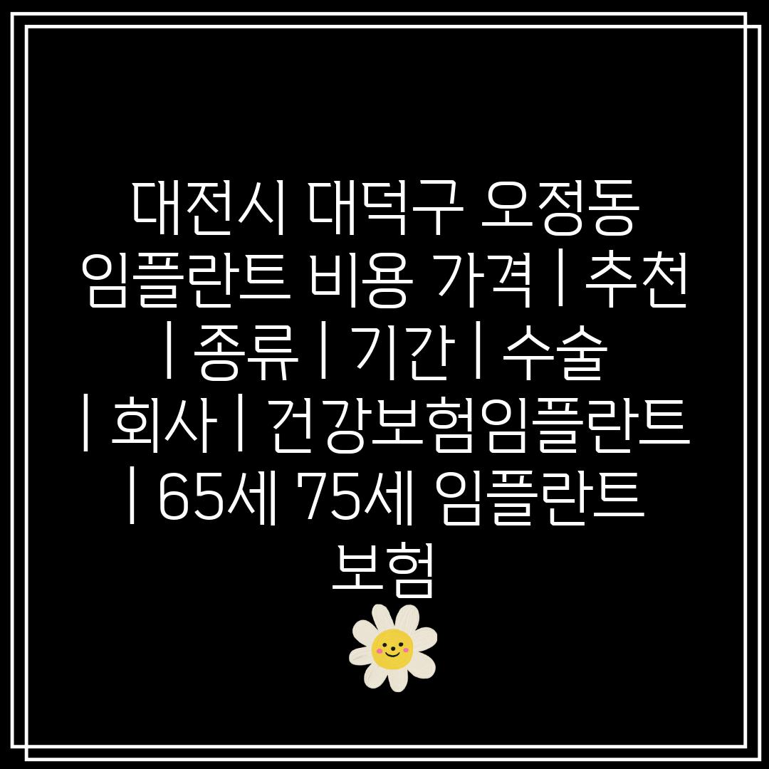 대전시 대덕구 오정동 임플란트 비용 가격 | 추천 | 종류 | 날짜 | 수술 | 회사 | 건강보험임플란트 | 65세 75세 임플란트 보험 에 대해 자주 묻는 질문 TOP 5