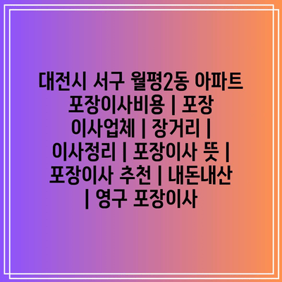 대전시 서구 월평2동 아파트 포장이사비용 | 포장 이사업체 | 장거리 | 이사정리 | 포장이사 뜻 | 포장이사 추천 | 내돈내산 | 영구 포장이사 에 대해 자주 묻는 질문 TOP 5