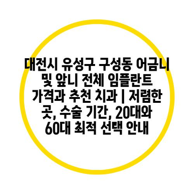 대전시 유성구 구성동에서 어금니 및 앞니 전체 임플란트 가격은 치과의 종류와 수술 방법에 따라 다양합니다.