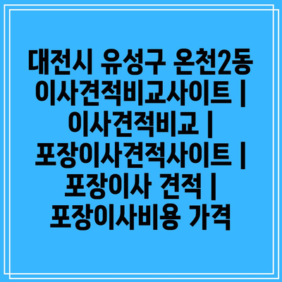 1. 대전시 유성구 온천2동 이사견적비교사이트를 통해 다양한 포장이사 업체의 견적을 한 번에 비교할 수 있습니다.