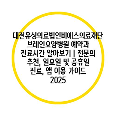 ✅ 대전유성의료법인비에스의료재단 브레인요양병원의 예약 방법과 진료 시간을 자세히 알아보세요.