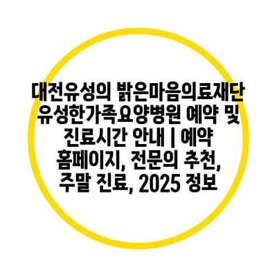 대전유성의 밝은마음의료재단 유성한가족요양병원 예약 및 진료시간 안내 | 예약 홈페이지, 전문의 추천, 주말 진료, 2025 정보