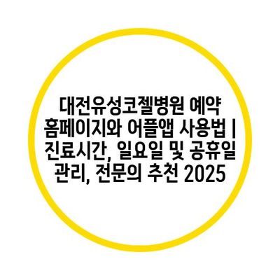 대전유성코젤병원 예약 홈페이지와 어플앱 사용법 | 진료시간, 일요일 및 공휴일 관리, 전연락 추천 2025에 대해 알아보겠습니다.