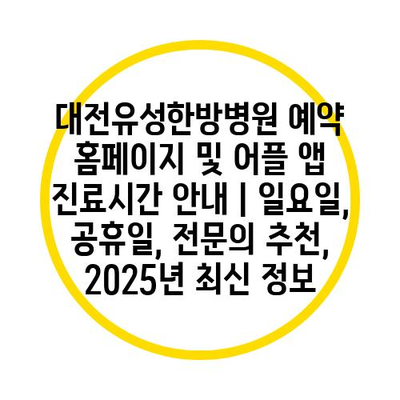 대전유성한방병원 예약 홈페이지 및 어플 앱 진료시간 공지 | 일요일, 공휴일, 전연락 추천, 2025년 최신 정보에 대해 자주 묻는 질문 TOP 5