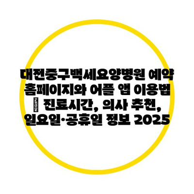대전중구백세요양병원 예약 홈페이지와 어플 앱 이용법 | 진료시간, 의사 추천, 일요일·공휴일 정보 2025에 대해 자주 묻는 질문 TOP 5