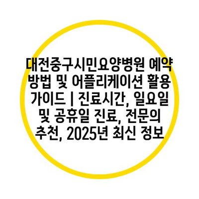 대전중구시민요양병원 예약 방법 및 어플리케이션 활용 설명서 | 진료시간, 일요일 및 공휴일 진료, 전연락 추천, 2025년 최신 정보 에 대해 자주 묻는 질문 TOP 5