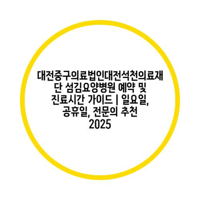 대전중구의료법인대전석천의료재단 섬김요양병원 예약 및 진료시간 가이드 | 일요일, 공휴일, 전문의 추천 2025