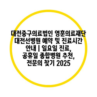 대전중구의료법인 영훈의료재단 대전선병원 예약 및 진료시간 공지 | 일요일 진료, 공휴일 종합병원 추천, 전연락 찾기 2025